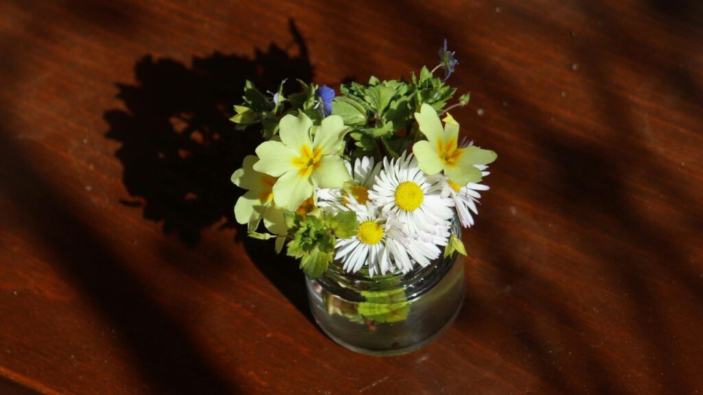 Periodically step back and have a check-up on the balance in every angle before you make any decision. Secure stems with a rubber band or floral tape before dropping them into the jar to prevent movement. Change the water every two days and re-trim the stems to extend the flowers’ life. These simple tricks noticeably improve both the longevity and appearance of your arrangement.